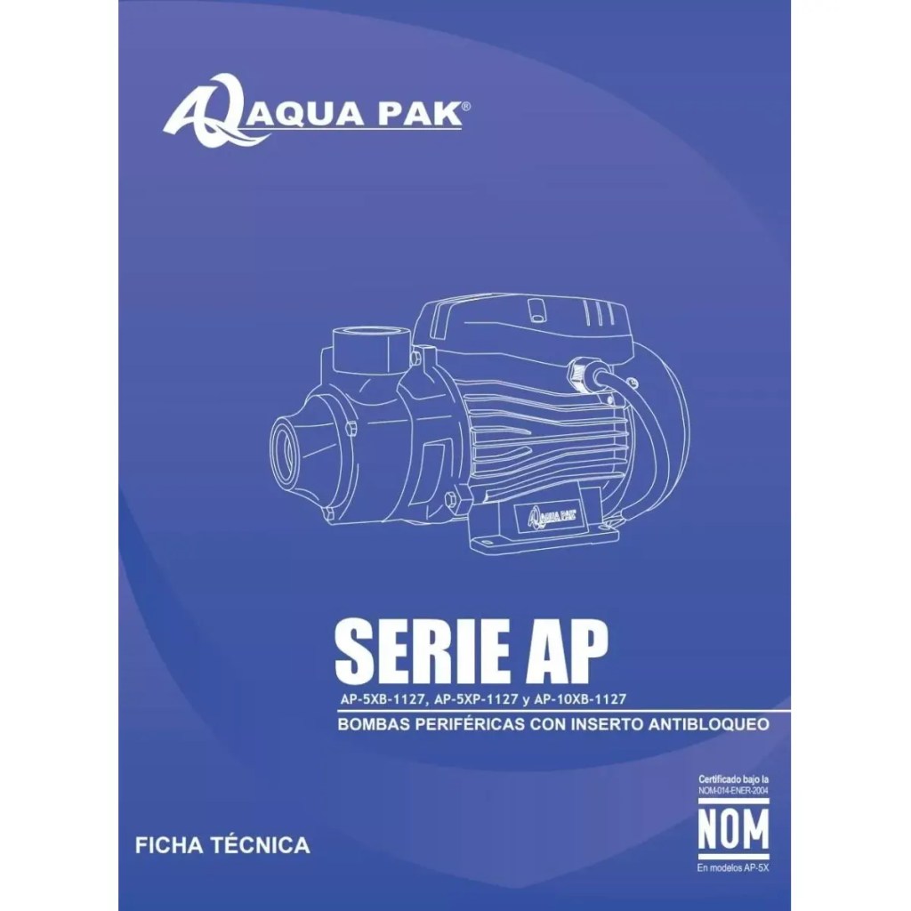 Bomba Periferica De 1 Hp Marca Aqua Pak A 127 V Succión Y Descarga De 1X1 Altura Máxima 64M