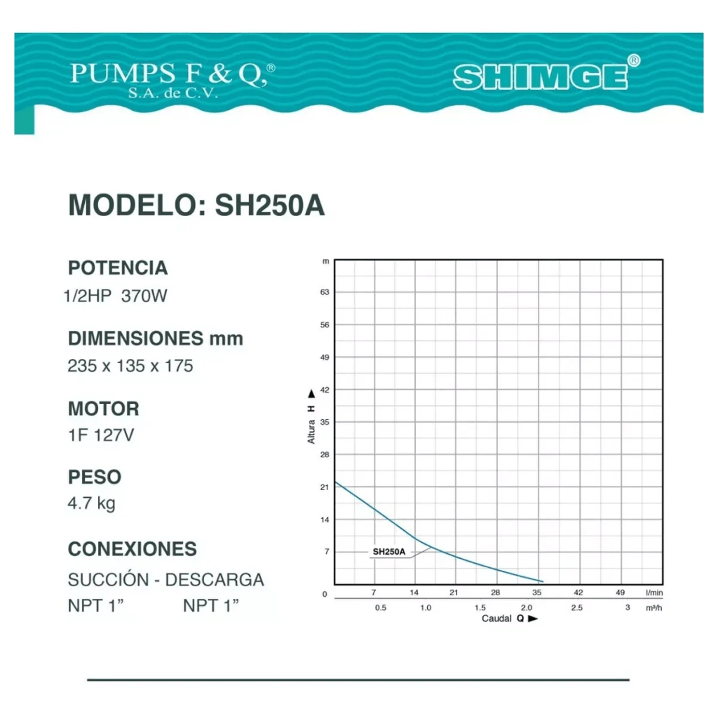 Bomba Periferica De 1/2 Hp Marca Shimge A 127 V Succión Y Descarga De 1X1 Altura Máxima 32M