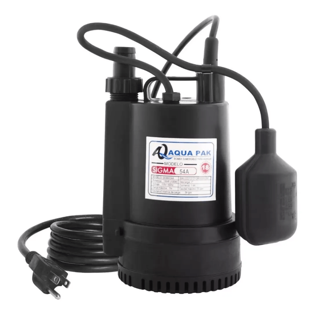 Bomba Sumergible Para Achique Con Flotador De 1/6 Hp A 115V Con Descarga De 1″