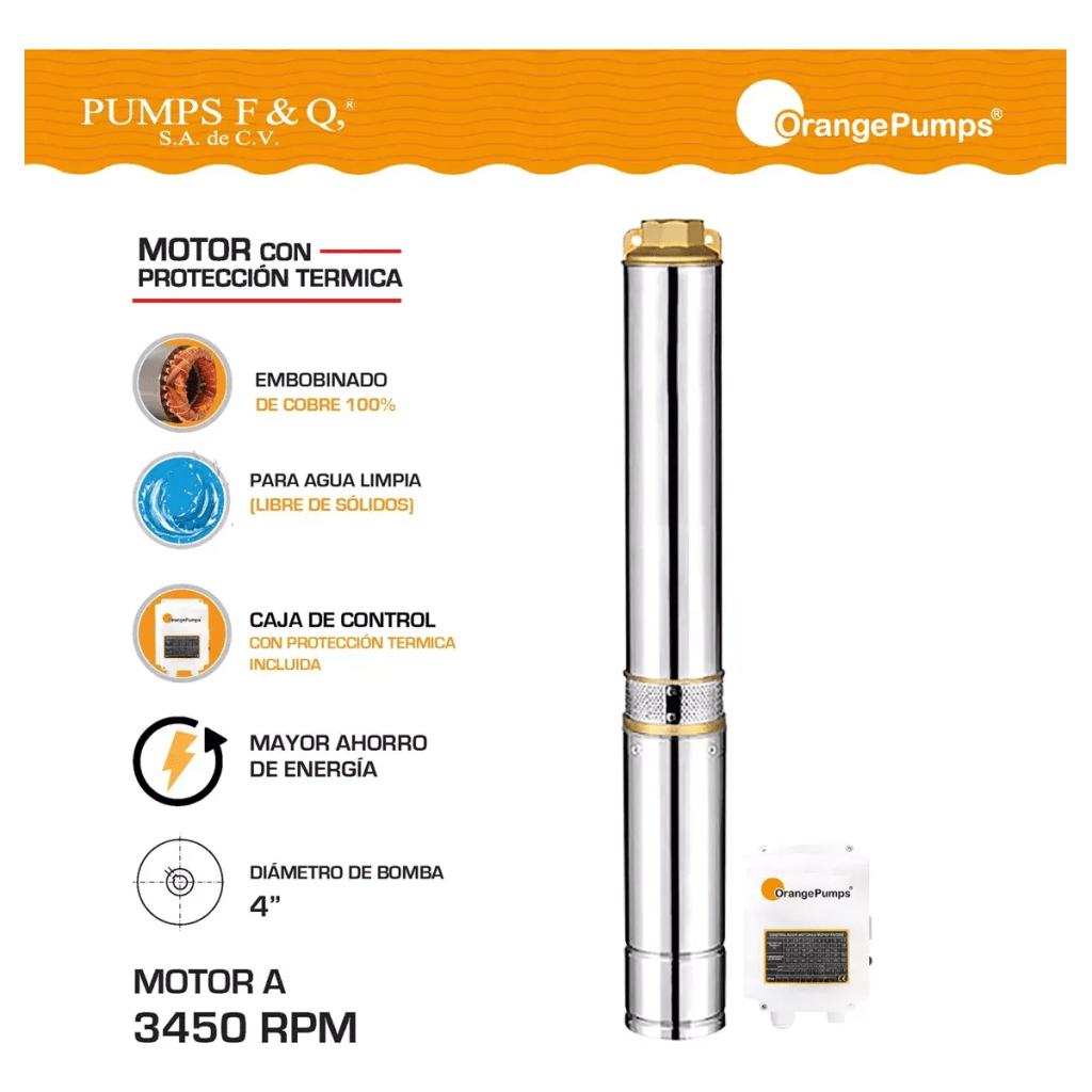 Bomba Sumergible Tipo Bala De 3 Hp Con Caja De Control A 220V 2F Con Descarga De 1.25″