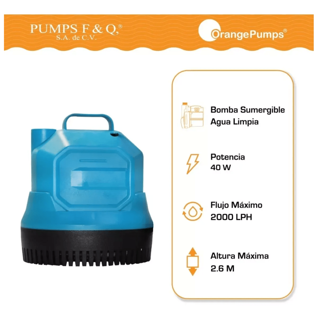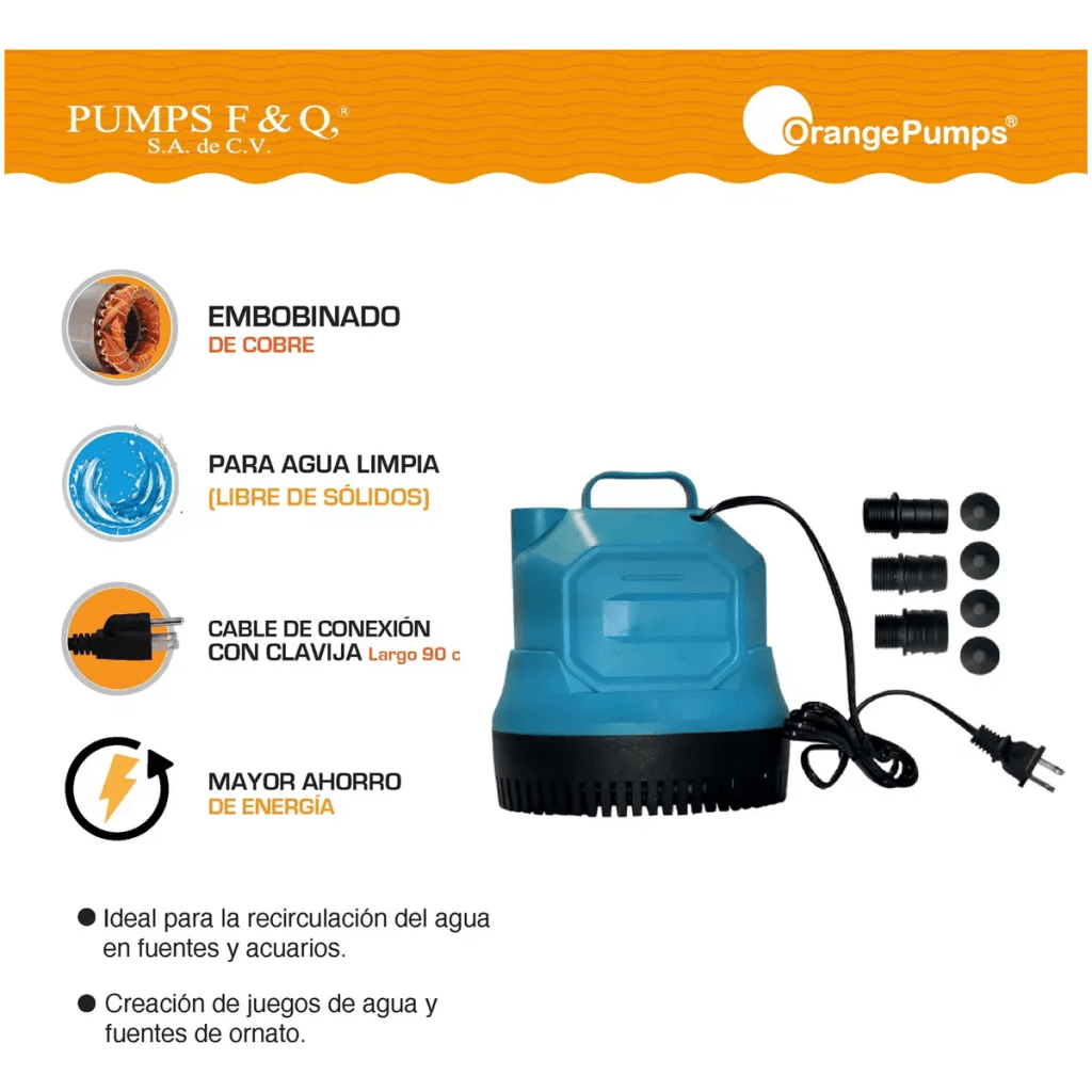 Bomba Sumergible Para Fuente 127V Para 2.6M Con Descarga De 1/2″