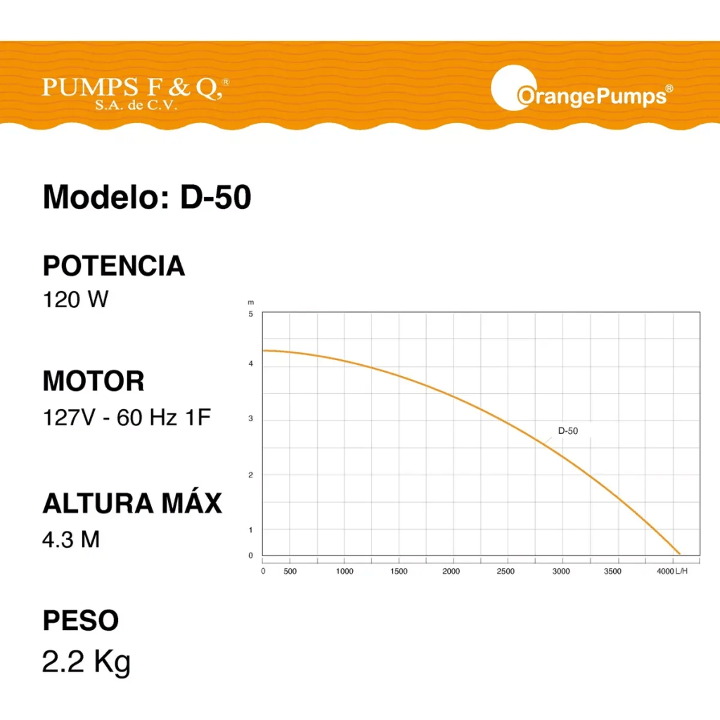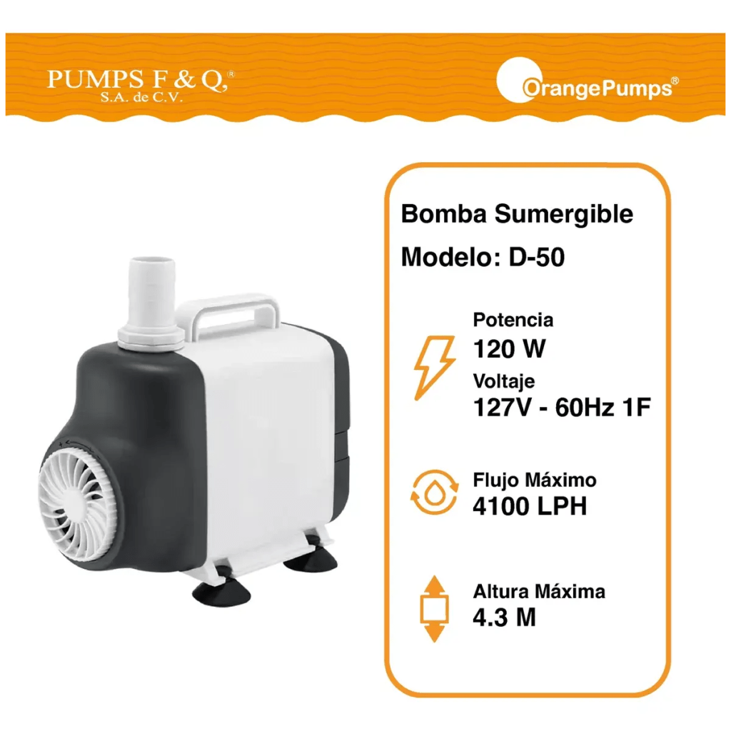 Bomba Sumergible Para Fuente 127V Para 4.3M Con Descarga De 3/4″