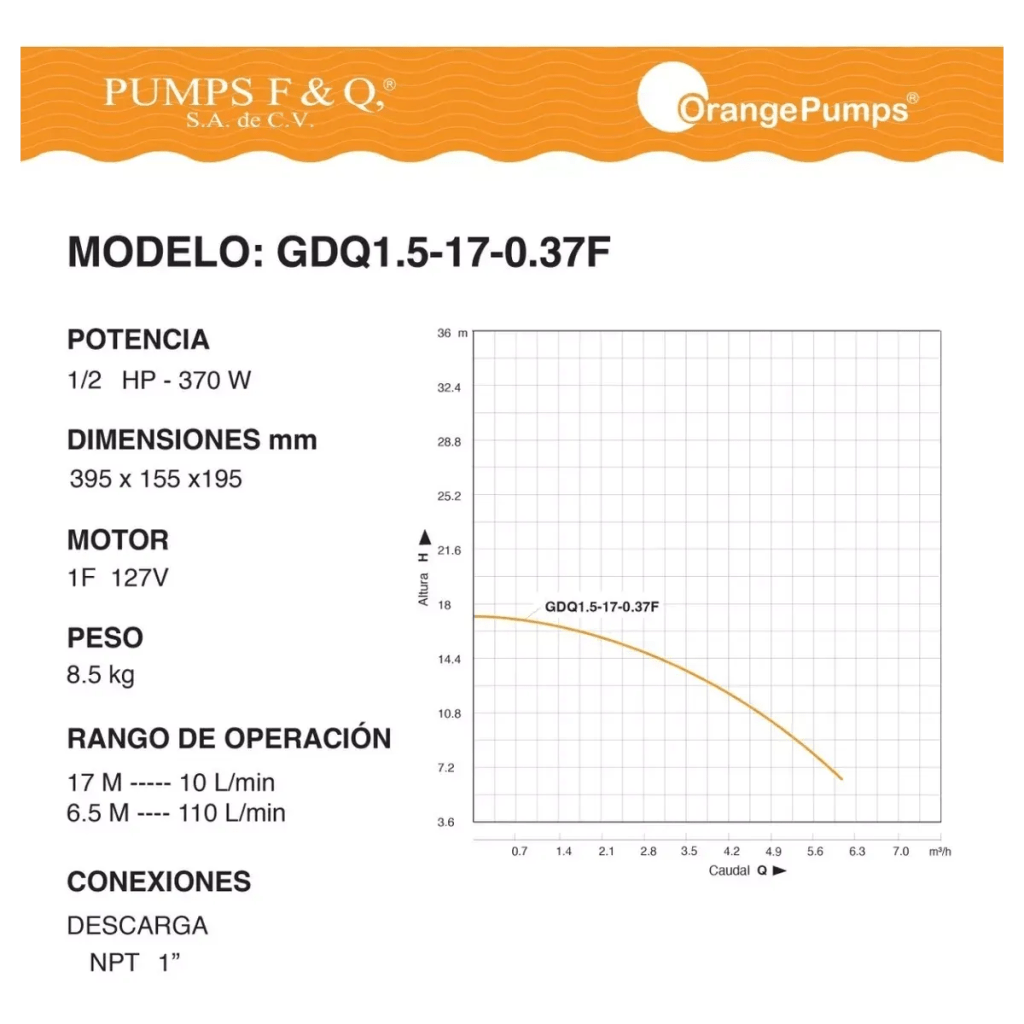 Bomba Sumergible Para Agua Limpia De 1/2 Hp Con Flotador A 127V Con Descarga De 1″