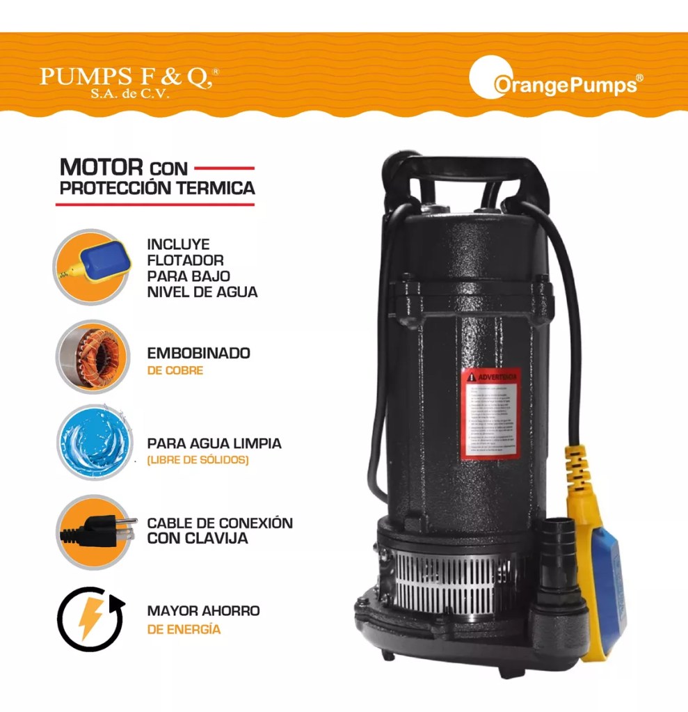Bomba Sumergible Para Agua Limpia Con Flotador De 1/2 Hp A 127V Con Descarga De 1″