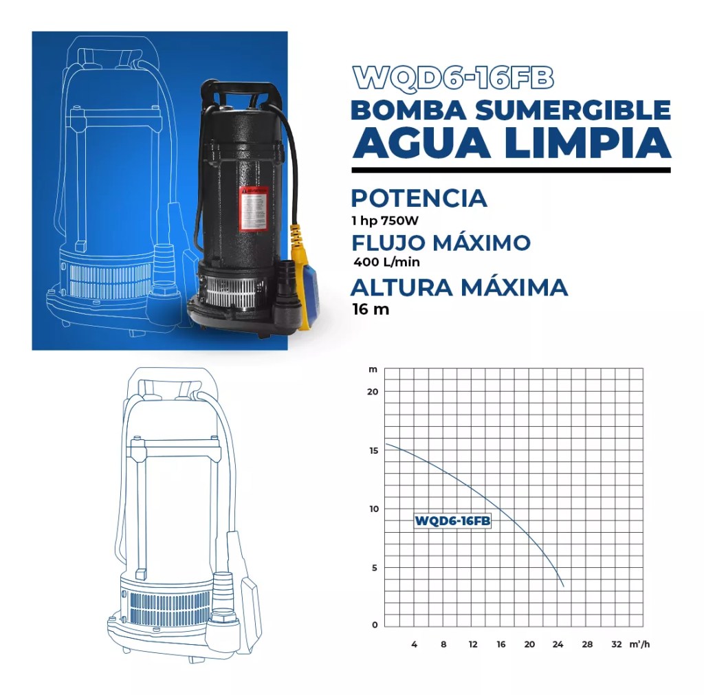 Bomba Sumergible Para Agua Turbia Con Flotador De 1 Hp A 127V Con Descarga De 2″
