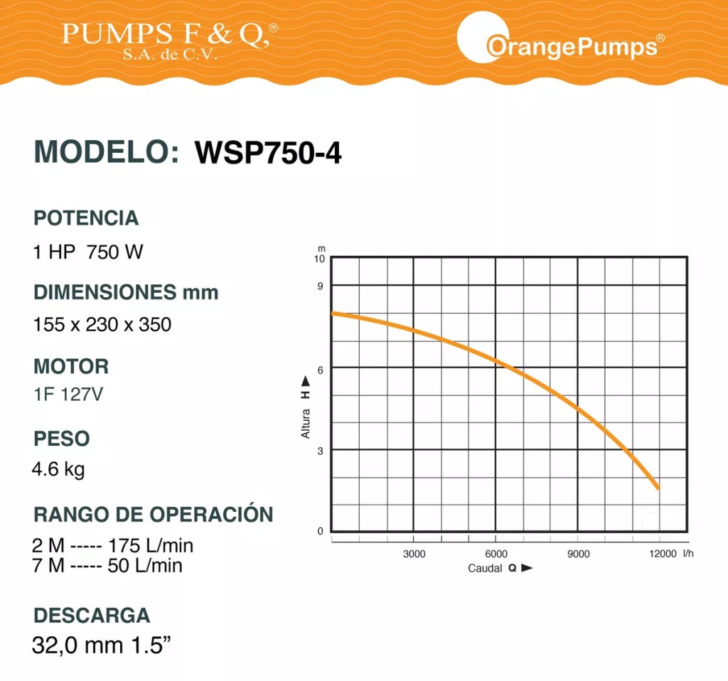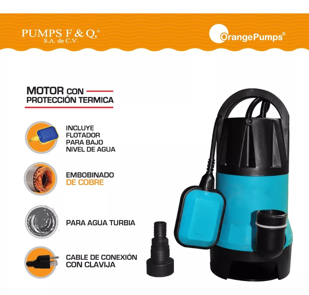 Bomba Sumergible Para Agua Limpia De 1 Hp Con Flotador A 127V Con Descarga De 1.5″