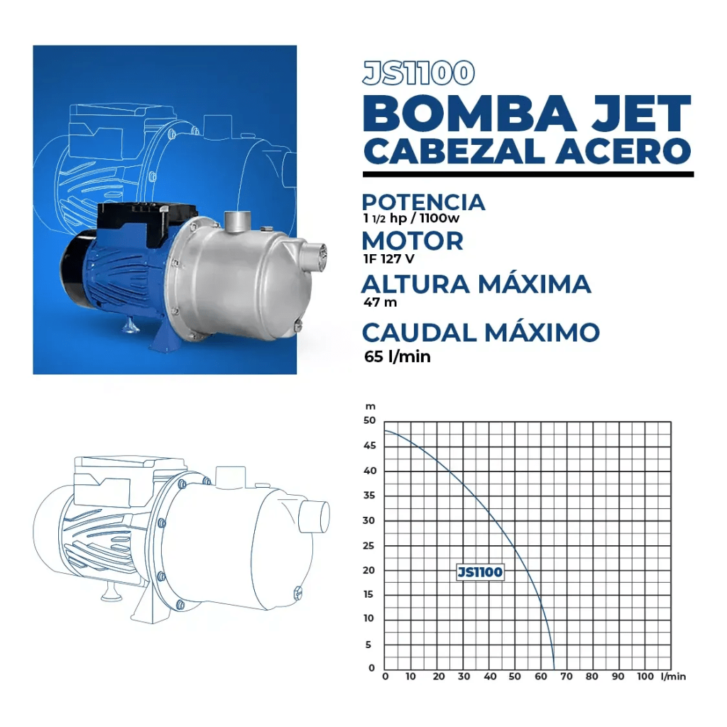 Bomba Tipo Jet En Acero Inoxidable De 1.5 Hp A 127 V Succión Y Descarga De 1X1