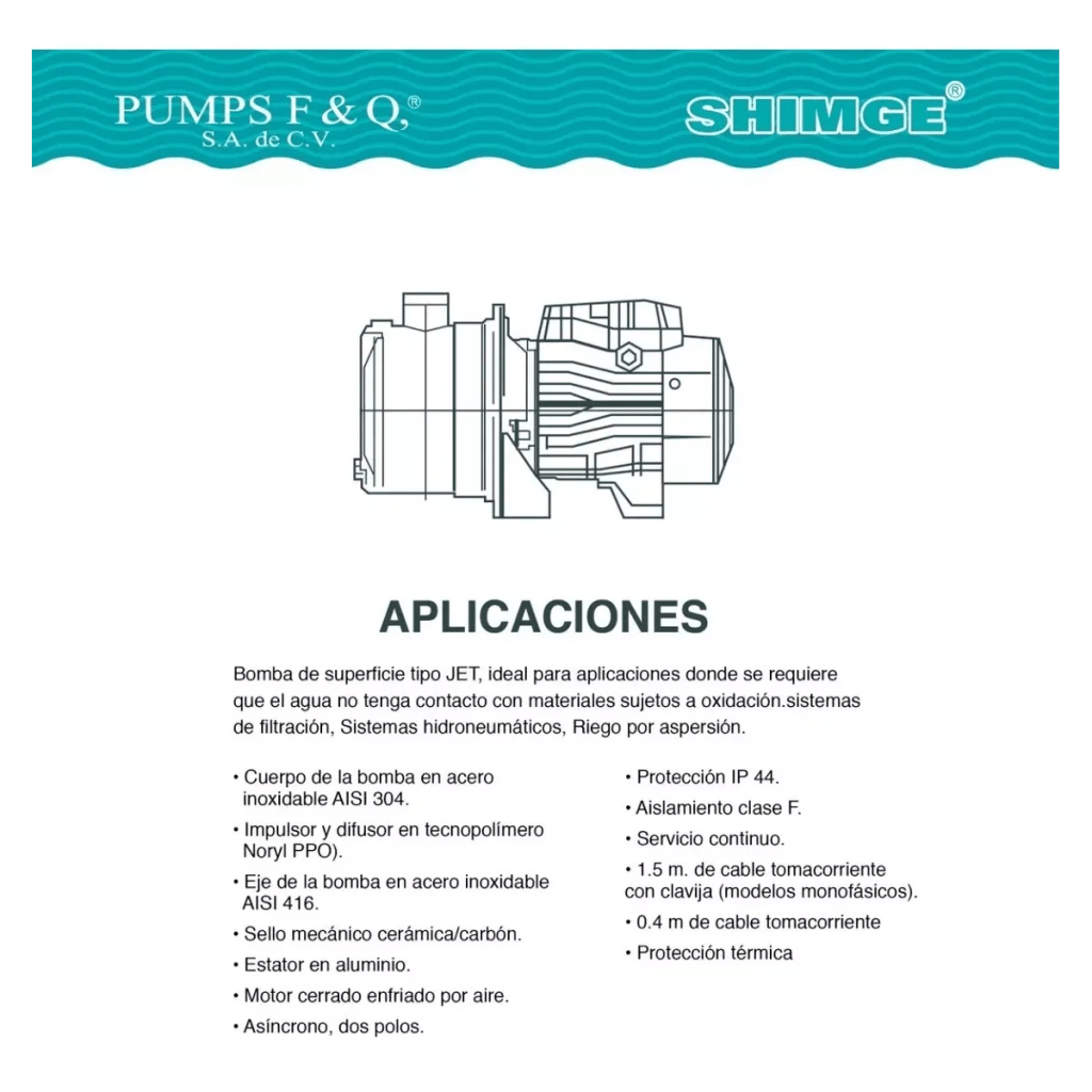 Bomba Tipo Jet En Acero Inoxidable De 2 Hp A 127 V Succión Y Descarga De 1X1