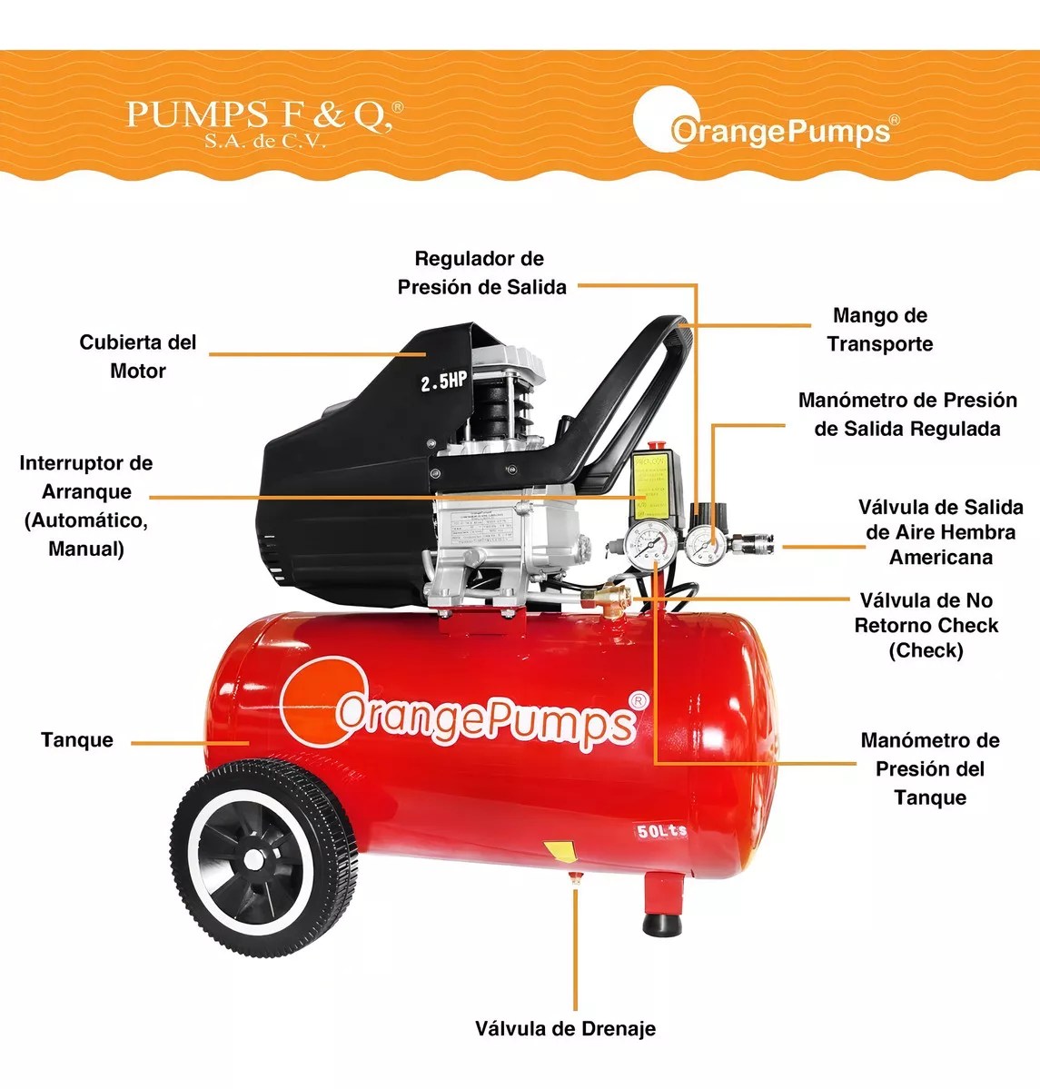 Compresor De Aire Horizontal Con Aceite Y Tanque De 50 Litros Con Motor De 2.5 Hp A 127V