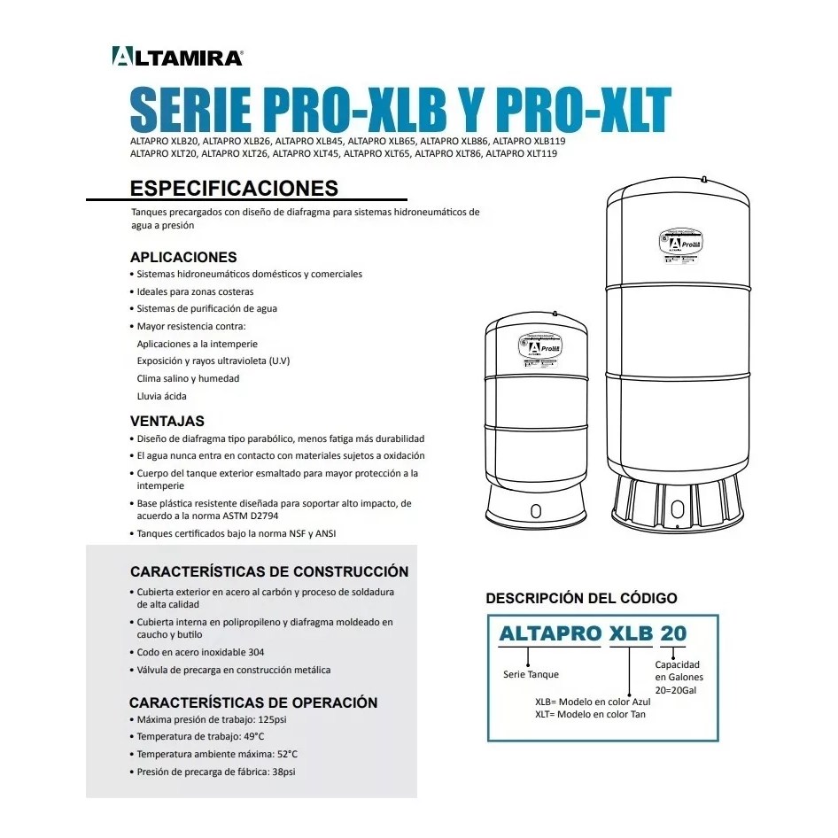 Tanque Hidroneumático En Diafragma De 26 Galones Con Salida De 1″